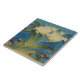 A beautiful art nouveau tile featuring lilies that is reproduced from a circa 1900 Minton tile. This tile was hand-glazed in gold, maroon, cream, and green against a blue background. Makes a great border tile or backsplash tiles! You can see how this tile looks as a border in our media section.
