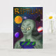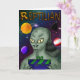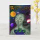 Alien Pun Birthday card. Extra terrestrial art with a reptilian alien with a background of stars and planets.