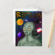 Extra terrestrial art with a reptilian alien with a background of stars and planets.