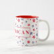 This ceramic coffee mug is shown with a patriotic stars print and republican text.