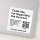 Encourage your small business customers to leave a review. Headline reads: "Thank You For Supporting Our Business". Change wording to suit your requirements. Change the QR Code link to the link leading to your own reviews page. If Google, advice is given here: https://tinyurl.com/5ydtb22k