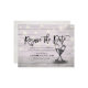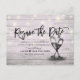 Modern Wedding Announcement Postponement Photo Postcard Templates - Elegant Lettering Script, Vintage Champagne Glasses and String Lights on Rustic Wood Background.