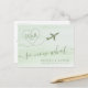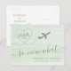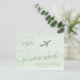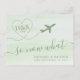 Beach Destination Wedding Postponement Announcement Postcard in mint green eucalyptus to update guests that your wedding location or date is being rescheduled or changed due to travel restrictions.