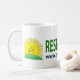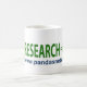 This PANDAS, PANS, PITAND awareness mug has the words Research = Cure. It is complimented with the PANDAS Network.org sun and website.