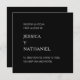Modern square Spanish save the date card featuring a simple, minimalist design with the title "Reserva La Fecha" along with your wedding details in white and in left alignment over a black background. A basic and plain design that still comes across as elegant.