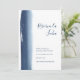 Modern and creative save the date card in Spanish featuring a simple design with a navy blue watercolor brushstroke on the left side, over a white background. On the top right is the title "Reserva la Fecha" in a handwritten font in right alignment. On the bottom left are your wedding details in a sans serif font, in left alignment. The backside is a solid navy blue. A unique design for an artistic couple.