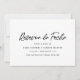 Modern save the date card featuring the words, "reserva la fecha" in a brush script handwriting font and three lines of text for your details. The backside is a solid black with one line of text in white for your wedding website or other additional info. The backside may be changed to any colour you wish. A simple yet elegant design with a minimalist style.