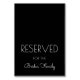 Black reserved place cards to fold in half after purchase. Modern printed white text, and script for the bottom line, this custom black and white standing card can be used to reserve seating for any group - bride's family, bridal party, etc., or person - mother of the bride, bride's sister, etc. Use on reception tables, or ceremony chairs, or anywhere a seat needs to be saved.