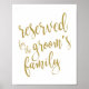 An elegant cutting edge wedding sign, features the text "reserved for the groom's family" in a extroverted script font, the glitter texture adds a festive and glamourous touch. The background colour can personalised according to your needs and preferences, please contact me if you have any special request.