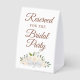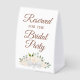 This simple tabletop sign will let your wedding guests know which areas are reserved for the bridal party. The beautiful boho chic floral design features elegant script lettering and a cluster of hand painted watercolor roses & blossoms in shades of champagne blush or very pale peach, with eucalyptus sprigs, leaves, and garden greenery tied with a white satin bow.