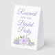 This simple tabletop sign will let your wedding guests know which areas are reserved for the bridal party. The beautiful boho chic design features elegant script lettering and a cluster of hand painted watercolor roses and blossoms in shades of lilac, lavender, and dusty purple.
