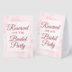 This simple tabletop sign will let your wedding guests know which areas are reserved for the bridal party. The simple boho chic watercolor design features peony flowers or wild roses in pastel shades of cotton candy blush pink. The elegant script lettering is written in dusty rose and reads: Reserved for the Bridal Party.