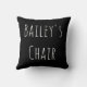 Funny, custom personalised Reserved for the Dog, Bailey's Chair reversible pillow. Simple black and white typography. Great gift for dog lovers.
