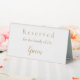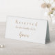 Table reservation sign for the grooms family. Pretty gold lettering on a white background