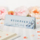 Table wedding reserved sign for bride's or groom's family.Watercolor blue flowers design is a good choice for those who like spring colours.