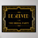 Reserved table or seat wedding sign in Gatsby art deco style design.