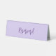 Purple hand lettered script: Rerserved. Violet, lavender coloured background.