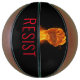 Social justice themed design features large fist of fire and flames with customisable "RESIST" text in red modern font on black background.
