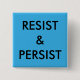 Resist & Persist, bold black text on bright blue 15 Cm Square Badge