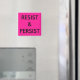 Add a message of political activism to your refrigerator, locker, and file cabinets with custom magnets which read: "Resist & Persist" in bold black text on a hot pink background.