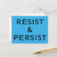 Tell your political representatives what you want them to fight for on a postcard featuring the words "Resist & Persist" in bold black text on a bright blue background.