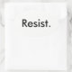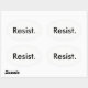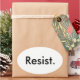 Glossy oval sticker, black letters on white: "Resist."