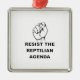 A resistance fist symbol against the Reptilian Agenda. Original Science Fiction design in black and white.