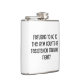 The flask itself is fine. It’s a cheap flask, obviously bought in bulk, however am prepared to overlook that. Given that it is a personalized item, I would have liked to have seen gift boxing instead of the generic packaging. Terrible printing, and/or quality. It’s a cheap, tacky vinyl. It is not cut straight and is also applied in a way that it is overhanging the bottom, causing the glue to catch on items and it will eventually roll and tear, damaging the wrap.