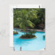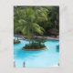 A resort pool shaded by a palm tree and offereing a sit down bar