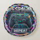 This design features a glowing, futuristic game controller. It captures the spirit of gaming with the bold words "RESPAWN" and "REPEAT." The neon colours and circuit board patterns give it a dynamic, techy feel.