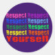 Rainbow of Respects one on top of the other ends with the word "yourself" to convey a colourful and powerful message that respects begins inside yourself. "Respect yourself."