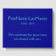 This simple funeral or memorial service guestbook features the message "We celebrate the great times we shared with you.", and the personalised name and birth/death dates of the individual who has passed away. The text is coloured turquoise, and the background is coloured dark blue. It could be used to record sympathetic wishes for the relatives and friends of somebody who has recently passed on.