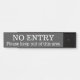 This respectable, clean design features the message "NO ENTRY" and the message "Please keep out of this area". This might be used in a business or a store to inform visitors, clients or patients that they are not allowed to pass through a particular door or area.