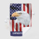 Respectable head of a bald eagle over the American flag. A patriotic golf towel for anyone. Customisable template name at the bottom. You can change or delete the name. You can transfer this design to a number of other towels. If you need to change the font, font colour, the colour of the background; if you need to adjust the image to the printable area, please, use the "Edit Design" button or "Click to customise further" under the "Details" link. This beautiful towel can be found in the "Sports" collection or in the "Sports, Toys & Games"-->"Sports & Outdoor"-->"Sports Equipment"-->"Golf"-->"Golf Towels" department. A choice of 16 eagles on sixteen golf towels. Buy one, have fun, and be happy.