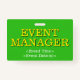 This elegant badge design features the message "EVENT MANAGER". A badge like this could perhaps be used to identify that the wearer is an official at an event. [~Z0000307]