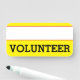 This conservative and plain volunteer reusable dry erase name tag style badge design features the message "VOLUNTEER". It also features an area where a volunteer’s name could be written using a dry-erase marker. A name tag style badge like this could possibly be worn to indicate that the wearer is an authorised volunteer or assistant at an event. [~Z0000359]