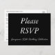 This respectable, elegant RSVP postcard design features the message "Please RSVP" on the front, along with a customisable occasion description. It also features a customisable RSVP form on the back, along with a customisable address that the completed RSVP cards would be mailed to. RSVP cards like this could perhaps be used to find out who will be attending a wedding reception, a Christmas party, a dinner party, or some other celebration.