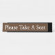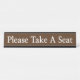 This professional, corporate design features the message "Please Take A Seat". This could be used in a seating area or a waiting room to inform clients or patients that they will be greeted shortly, and that they should take a seat in the meanwhile.
