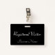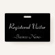 This opulent badge design features the message "Registered Visitor", and a customisable company name or other custom message. A badge like this could perhaps be used to indicate that a person is a known and authorised guest or visitor at a business or workplace. [~Z0000307]