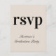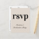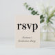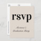This respectable, elegant RSVP postcard design features the message "rsvp" on the front, along with a customised occasion description. It also features a personalised RSVP form on the back for the recipient to complete, along with a personalised address that the completed RSVP cards would be mailed to. RSVP cards like this might be used to find out who will be attending a retirement party, a wedding shower, a wedding reception, or some other celebration.