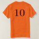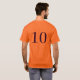 Orange shirt with yellow and blue writing. A Number on the back because its a soccer shirt/jersey. The nuts are the soccer balls, as if one is to respect soccer.