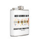 The flask itself is fine. It’s a cheap flask, obviously bought in bulk, however am prepared to overlook that. Given that it is a personalized item, I would have liked to have seen gift boxing instead of the generic packaging. Terrible printing, and/or quality. It’s a cheap, tacky vinyl. It is not cut straight and is also applied in a way that it is overhanging the bottom, causing the glue to catch on items and it will eventually roll and tear, damaging the wrap.
