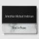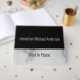 On the front of this black and faux white marble guest book, there's a large, grey display text that can be replaced with the appropriate name. At the bottom, there's black display text on the faux marble stripe (Shown: Rest In Peace). All text may be edited or deleted.