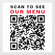 Modern customisable white window cling sign for your restaurant, cafe, coffee house, etc., with your QR code for customers to scan for your contactless menu. "Scan To See Our Menu" is in bold black and red typography (contact us if you would like to change the colours).