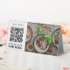 This is a white "scan and order our menu" table sign with customised photo, business qr code, and text in black. It is used to indicate where customers can scan and place their orders. Clear message and easy to spot. A great order pickup sign for restaurants, shops, and other small businesses.