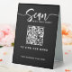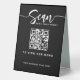 This convenient tent sign has a template for displaying your restaurant, cafe or food counter's price list using contactless QR Code technology. Have your customers scan the custom QR Code that links directly to your menu URL. These signs are available in a variety of sizes to meet your business needs. Shown here in black with white text.