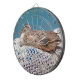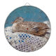A duck is resting on a heap of fishing nets on the island of Mallorca, Spain.