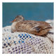 A duck is resting on a heap of fishing nets on the island of Mallorca, Spain.