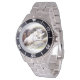 Has heft and feel of expensive stainless steel quartz watches. Good band with safety catch. I removed links, which is easy because engraved arrows show direction to push the linking pins. As always by this seller, the image (a railroad logo) is a perfect reproduction of my emailed image, and is precisely spaced and aligned.