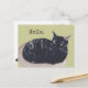 Painting of a tortoise shell cat resting in a cat beige cat bed, with Hello, is printed on custom postcards. You can easily type in your own message on the template form. The background colour of pale green can be customised. Thank you for shopping CherylsArt on Zazzle.